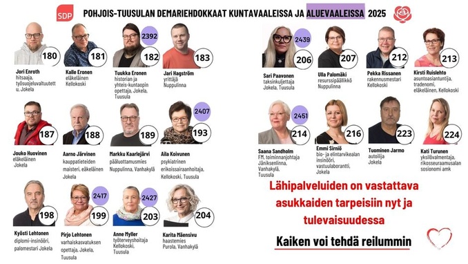 ![]() Ehdokkaat Pohjois-Tuusulan Demarien listalla |