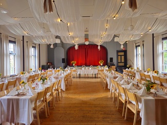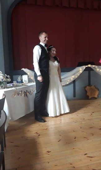 Tutustu kauniiksi laitettuun hääjuhlatilaan, kuvat tallennettu kauniin hääparin luvalla.